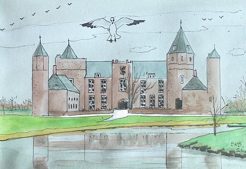 Soms begin ik met dunne inktlijntjes en werk ik het verder met