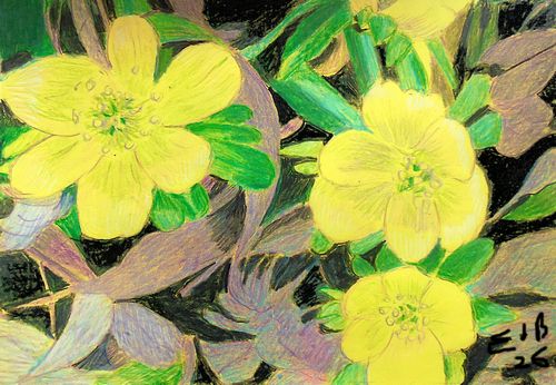 geheel met kleurpotlood opgezet of met gemengde techniek vervaardigd.