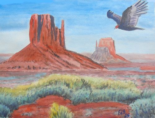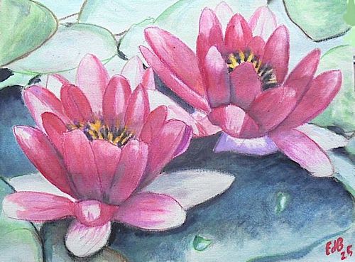 Nu gebruik ik aquareltechnieken. Meestal nat op droog. Voor de luchten
